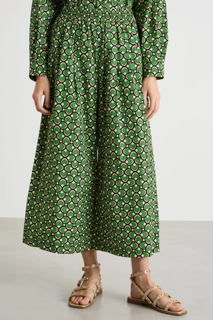 Cropped wide-leg trousers crafted in printed pure cotton poplin, with an elasticated waist, double front pleats and side seam pockets.