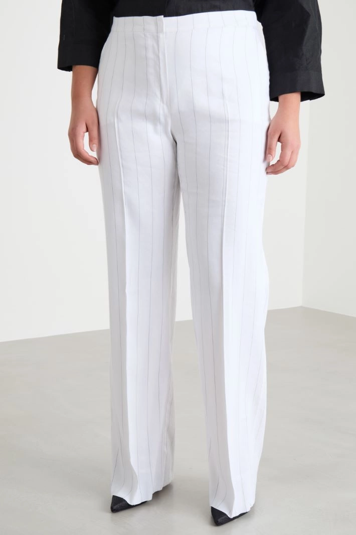 Straight-fit trousers in pinstriped linen and viscose twill, featuring French pockets and a zip and hook fastening.