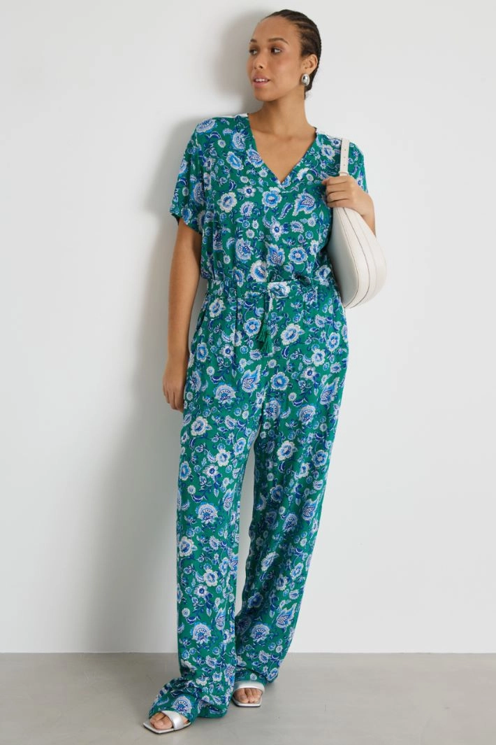 Jogger-style trousers crafted in printed viscose, featuring an elasticated drawstring waist, French pockets and crochet trim detailing along the sides.