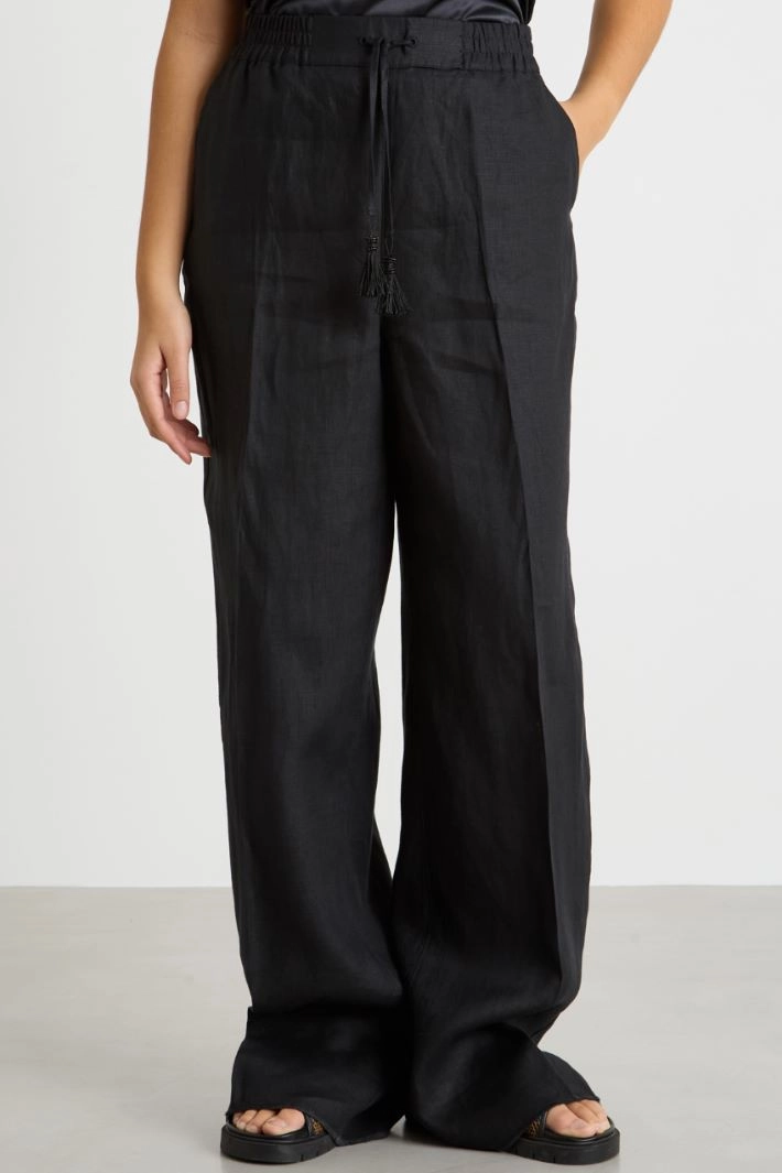 Wide-leg trousers with drawstring and tassels